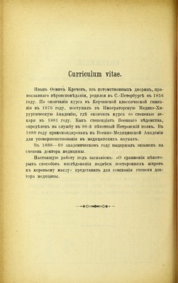 O sravnenii niekotorykh sposobov opredieleniia podmiesei postoronnikh zhirov k korov'emu maslu : dissertatsiia na stepen' doktora meditsiny / Ivana Krecheva ; tsenzorami dissertatsii po porucheniiu Konferentsii byli professory N.V. Sokolov, I.M. Sorokin i privat-dotsent S.V. Shidlovskii.