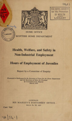 Credit: Health, welfare, and safety in non-industrial employment : hours of employment of juveniles / report by a committee of enquiry. Source: Wellcome Collection.
