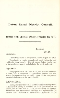 Credit: [Report 1914] / Medical Officer of Health, Luton R.D.C. Source: Wellcome Collection.