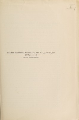 ![1 [From THE BIOCHEMICAL JOURNAL, Vol. XXV, No. 3, pp. 770-772, 1931] [All Rights reserved] PRINTED IN GREAT BRITAIN i](https://iiif.wellcomecollection.org/image/b30628969_0001.jp2/full/800%2C/0/default.jpg)