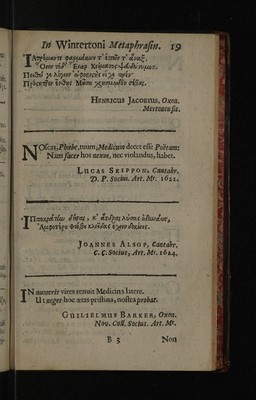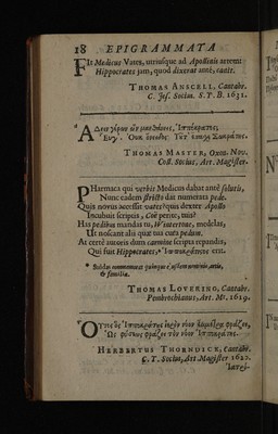 Credit: Epigrammata regiorum medicinae professorum, Cantabrigiensis atque Oxoniensis ... / In Radulphi Wintertoni metaphrasin nuper editam. Quibus accedunt epigrammata therpeutics ejusdem, ad malevoroum letorum aegritidinis. Source: Wellcome Collection.