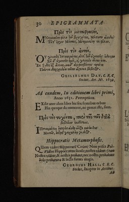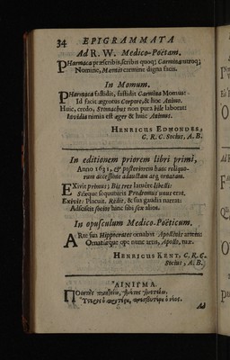Epigrammata regiorum medicinae professorum, Cantabrigiensis atque Oxoniensis ... / In Radulphi Wintertoni metaphrasin nuper editam. Quibus accedunt epigrammata therpeutics ejusdem, ad malevoroum letorum aegritidinis.