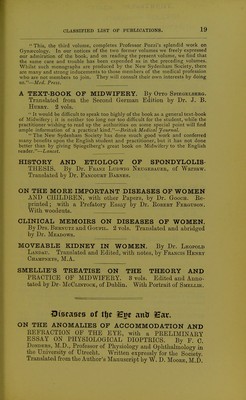 Selected essays and monographs : chiefly from English sources / Braxton Hicks, Bodington, Hodgkin, Paget, Humphry, Ehlers.