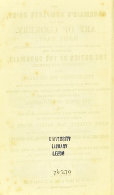 The cookmaid's complete guide, and the art of cookery made easy : being the best and easiest methods of correctly fulfilling all the duties of the cookmaid, in respectable families. With instructions for steaming; and the most exact directions ever given for properly preparing to cook, for cleanly and nicely cooking and genteely serving-up, all kinds of provisions ... The whole written from practice and experience / by a lady.
