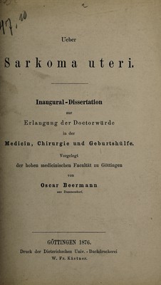 Credit: Ueber Sarkoma uteri ... / Oscar Beermann. Source: Wellcome Collection.