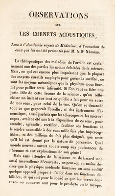 Observations sur les cornets acoustiques / par M. Itard.