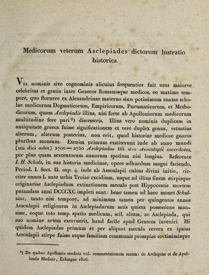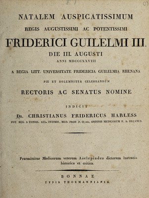 Natalem ... Friderici Guilielmi III ... celebrandum ... / indicit ... Praemittitur medicorum veterum Asclepiades dictorum lustratio historica et critica.