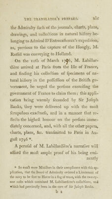 An account of a voyage in search of La Pérouse, undertaken by order of the Constituent assembly of France, and performed in the years 1791, 1792, and 1793, in the Recherche and Esperance, ships of war; under the command of Rear-admiral Bruni d'Entrecasteaux / Translated from the French ... In two vols., illustrated by engravings, and a chart exhibiting the track of the ships.