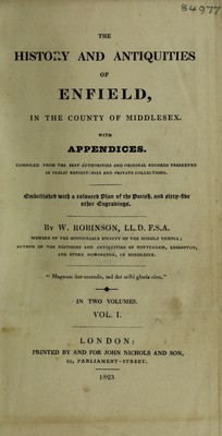 The history and antiquities of Enfield, in the county of Middlesex / [William Robinson].
