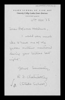 Letter from R E Clatworthy to J B S Haldane