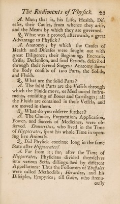 Credit: The rudiments of physick clearly and accurately describ'd ... by way of dialogue ... First collected from the instructions of a celebrated professor of medicine [F. vander Zype] ... / Now first translated from the Latin, revised and corrected. [Appendix]. Source: Wellcome Collection.
