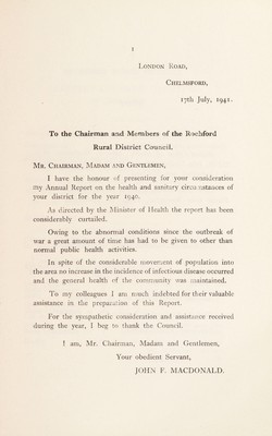 Credit: [Report 1940] / Medical Officer of Health, Rochford R.D.C. Source: Wellcome Collection.