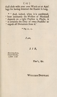 Credit: A letter to Dr. Thomson in answer to the Case of the Right Honourable Thomas Winnington Esq / By William Douglas. Source: Wellcome Collection.