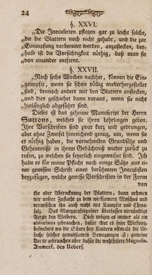 Eine geheime Handschrift der Herrn Suttons, und raisonnirende Erläuterung der Mittel, welche sie sich bey der Einimpfung der Blattern bedienen ... / aus dem Französischen übersetzt und mit einem Anhang begleitet, welcher das Tagebuch von den Einimpfungsversuchen enthält, welche ... durch den Herrn Geh. Rath Baylies, and vier und zwanzig Kindern in dem grossen Friedrichshospital zu Berlin ... sind angestellt worden.