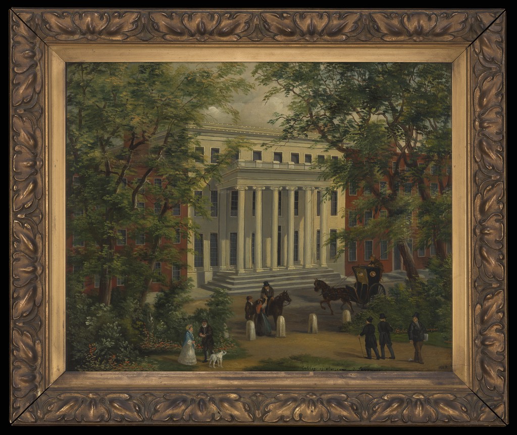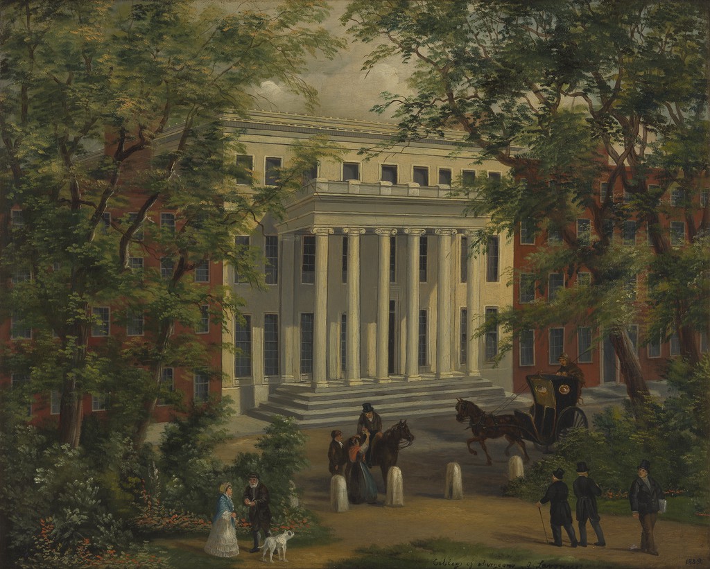 Credit: The Royal College of Surgeons of England: the portico from Lincoln's Inn Fields. Oil painting, 18--. Source: Wellcome Collection.