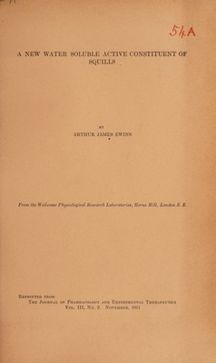 A new water soluble active constituent of squills / by Arthur James Ewins.