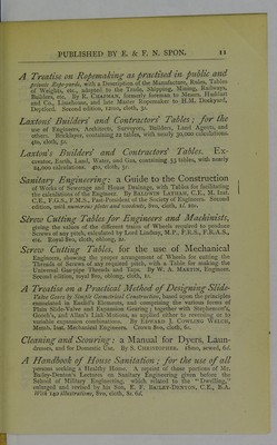 A handbook of house sanitation : for the use of all persons seeking a healthy home ; a reprint of those portions of Mr. Bailey-Denton's lectures on sanitary engineering given before the school of military engineering, Chatham, which related to the "dwelling."