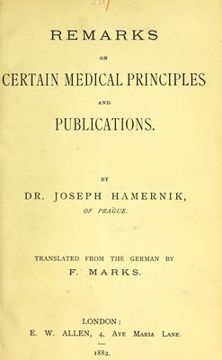 Remarks on certain medical principles and publications / by Joseph Hamernik ; translated from the German by F. Marks.