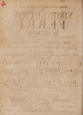 Credit: Dissertatio inauguralis medica de viribus et usu ferri in medicina ... / [Johann David Lehmann]. Source: Wellcome Collection.