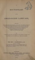 A dictionary of the Anglo-Saxon language. Containing the accentuation - the grammatical inflections - the irregular words referred to their themes - the parallel terms, from the other Gothic languages - the meaning of the Anglo-Saxon in English and Latin - and copious English and Latin indexes, serving as a dictionary of English and Anglo-Saxon, as well as of Latin and Anglo-Saxon / By the Rev. J. Bosworth. Public Domain Mark. Source: Wellcome Collection.