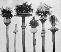 M0019304: Various types of stone-headed clubs from Collingwood Bay, New Guinea. In copyright. Source: Wellcome Collection.