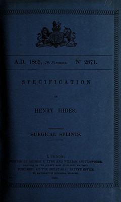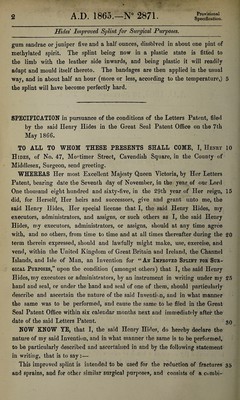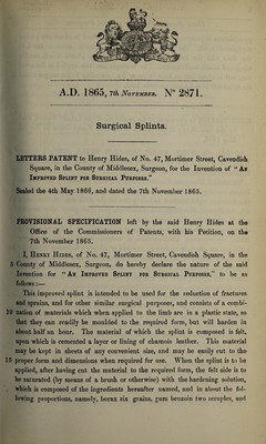Credit: Specification of Henry Hides : surgical splints. Source: Wellcome Collection.