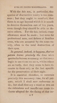 Credit: The art of preserving the sight unimpaired to an extreme old age; and of re-establishing and strengthening it when it becomes weak; with instructions how to proceed in accidental cases, which do not require the assistance of professional men, and the mode of treatment proper for the eyes during, and immediately after, the small pox. To which are added observations on the inconveniences and dangers arising from the use of common spectacles etc. etc / By an experienced oculist. Source: Wellcome Collection.