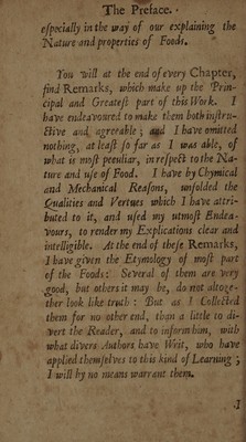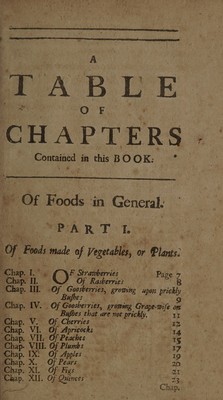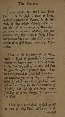 Credit: A treatise of foods, in general: first, the difference and choice which ought to be made of each sort in particular. Secondly, the good and ill effects produced by them. Thirdly, the principles wherewith they abound. And, fourthly, the time, age and constitution they suit with. To which are added, remarks upon each chapter; wherein their nature and uses are explained, according to the principles of chymistry and mechanism. Written in French ... Now done into English [by D. Hay] / [Louis Lémery]. Source: Wellcome Collection.