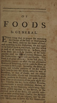 Credit: A treatise of foods, in general: first, the difference and choice which ought to be made of each sort in particular. Secondly, the good and ill effects produced by them. Thirdly, the principles wherewith they abound. And, fourthly, the time, age and constitution they suit with. To which are added, remarks upon each chapter; wherein their nature and uses are explained, according to the principles of chymistry and mechanism. Written in French ... Now done into English [by D. Hay] / [Louis Lémery]. Source: Wellcome Collection.