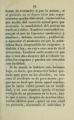 Tratado completo de la estraccion de los dientes, muelas y raigones, y modo de limpiar la dentadura : precedido de algunas observaciones sobre le odontalg ia y otras no menos interesantes, para uso de los que se dediquen a la cirugia menor o ministrante /cpor D. Antonio Rotondo.