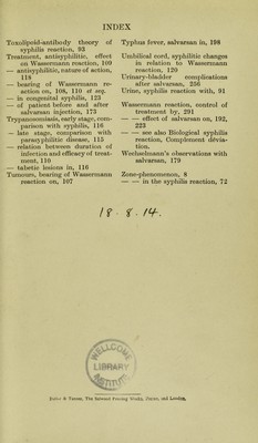 Credit: Recent methods in the diagnosis and treatment of syphilis : the Wasserman serum reaction and Ehrlich's Salvarsan / by Carl H. Browning and Ivy McKenzie ; in collaboration with John Cruickshank [and others]. Source: Wellcome Collection.