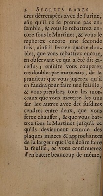 Credit: Plusieurs secrets rares et curieux, pour la guérison des maladies; pour la metallique, l'oeconomique, et les teintures; la médecine du flos-coeli; et autres curiositez / [Quesnot]. Source: Wellcome Collection.