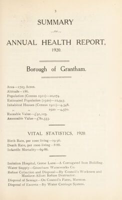 Credit: [Report 1920] / Medical Officer of Health, Grantham Borough. Source: Wellcome Collection.