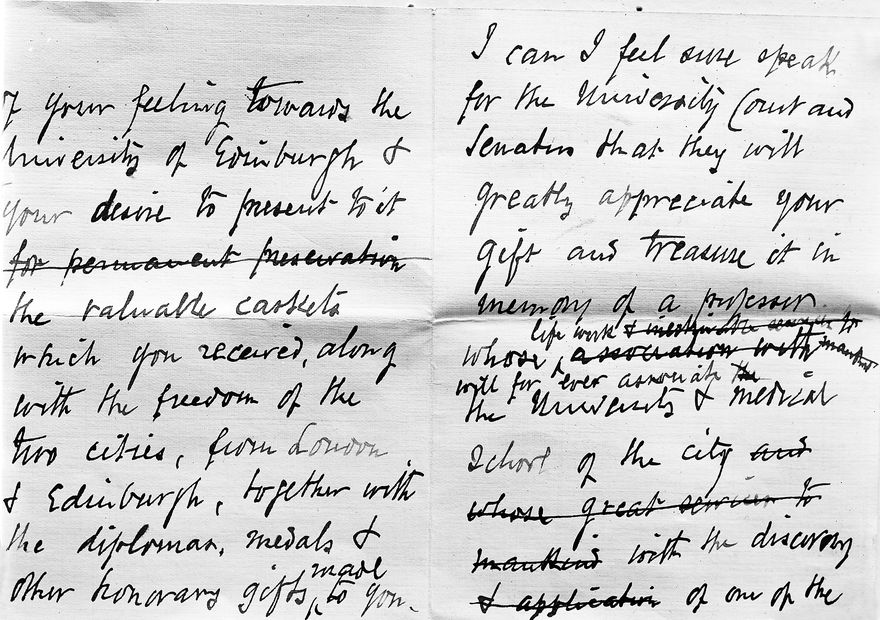 Credit: M0019600EB: Letter to Joseph Lister from Sir William Turner, 1907: middle two pages. Source: Wellcome Collection.