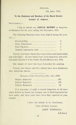 Credit: [Report 1913] / Medical Officer of Health, Andover R.D.C. Source: Wellcome Collection.