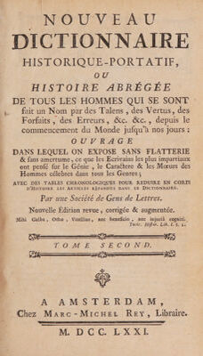 Credit: Dictionnaire universel, historique, critique, et bibliographique / ou, Histoire abrégée et impartiale des hommes de toutes les nations qui se sont rendus célèbres, illustres ou fameux ... depuis la plus haute antiquité jusqu'à nos jours; avec les dieux et les héros de toutes les mythologies; enrichie des notes et additions des abbés Brotier et Mercier de Saint-Leger, etc., etc. D'après la 8. éd. pub. par MM. Chaudon et Delandine. Source: Wellcome Collection.