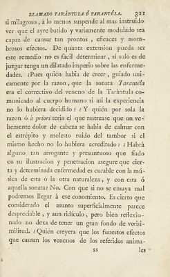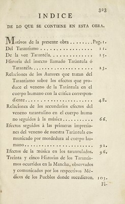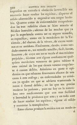 Tarantismo observado en España, con que se prueba el de la pulla, dudado de algunos, y tratado de otros de fabuloso. Y memorias para escribir la historia del insecto llamado tarántula, efectos de su veneno en el cuerpo humano, y curacion por la música con el modo de obrar de esta, y su aplicacion como remedio á varias enfermedades / [Francisco Xavier Cid].