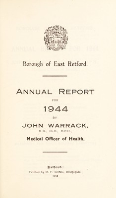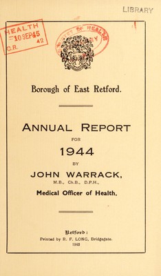 Credit: [Report 1944] / Medical Officer of Health, East Retford U.D.C. / Borough. Source: Wellcome Collection.
