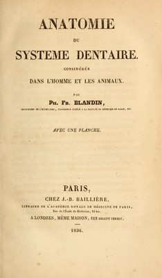 Anatomie du systeme dentaire : considéré dans l'homme et les animaux / par Ph. Fr. Blandin.