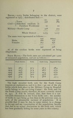 Credit: [Report 1907] / Medical Officer of Health, Aldershot U.D.C. Source: Wellcome Collection.