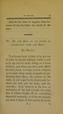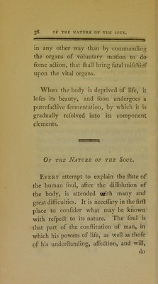 Credit: An essay on the nature and constitution of man; comprehending an answer to the following question, proposed by a learned society : "are there any satisfactory proofs of the immateriality of the soul? If such proofs exist, what conclusions are to be formed from them with respect to the soul's duration, sensation, and employment, in its state of separation from the body?'' / by R. C. Sims. Source: Wellcome Collection.