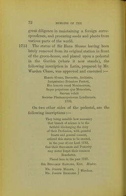Memoirs, historical and illustrative, of the Botanic Garden at Chelsea belonging to the Society of Apothecaries of London ... with illustrations, plans of the garden, and a catalogue of the plants, arranged according to the natural system / by the late Henry Field, Esq. revised, corrected, and continued to the present time, by R.H. Semple, M.D.