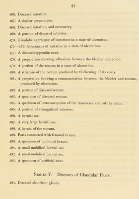 Credit: Catalogue of preparations illustrative of human and comparative anatomy, in healthy and in morbid conditions of organs; of animal monstrosities, of calculi, of other concretions, and of subjects in natural history; which were employed by Sir William Blizard, F.R.S. in his lectures delivered at the London Hospital; and presented by him, in 1811, to the Royal College of Surgeons in London : also, of donations, by the same hand, before and since that period. Source: Wellcome Collection.