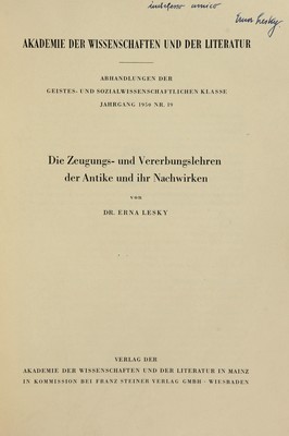 Die Zeugungs- und Vererbungslehren der Antike und ihr Nachwirken / [Erna Lesky].
