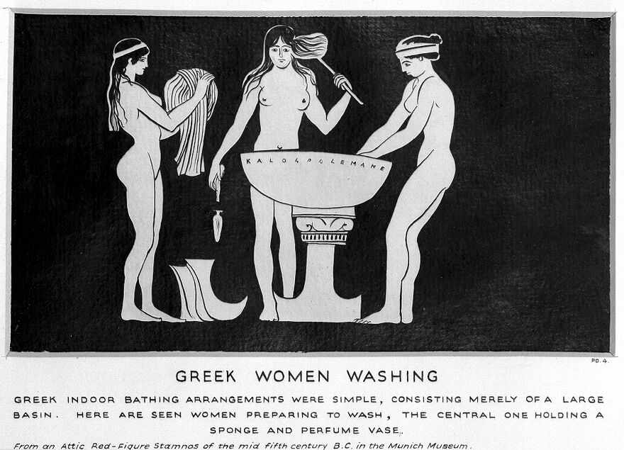 Credit: M0014798: Greek women washing, decoration on an Attic red-figure stamnos, mid 5th century B.C. Source: Wellcome Collection.