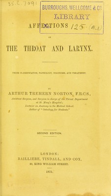 Affections of the throat and larynx : their classification, pathology, diagnosis, and treatment / by Arthur Trehern Norton.