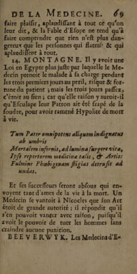 Éloge de la medecine et de la chirurgie. Deffense de la medecine contre les calomnies de Montagne / en forme de dialogue. Par le Sr. Beeverwyk ... Traduit du Holandois par Madame de Zoutelandt.