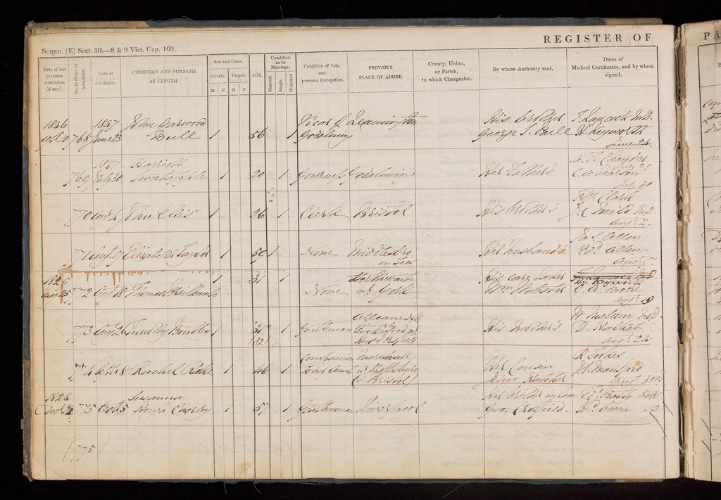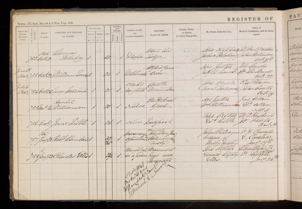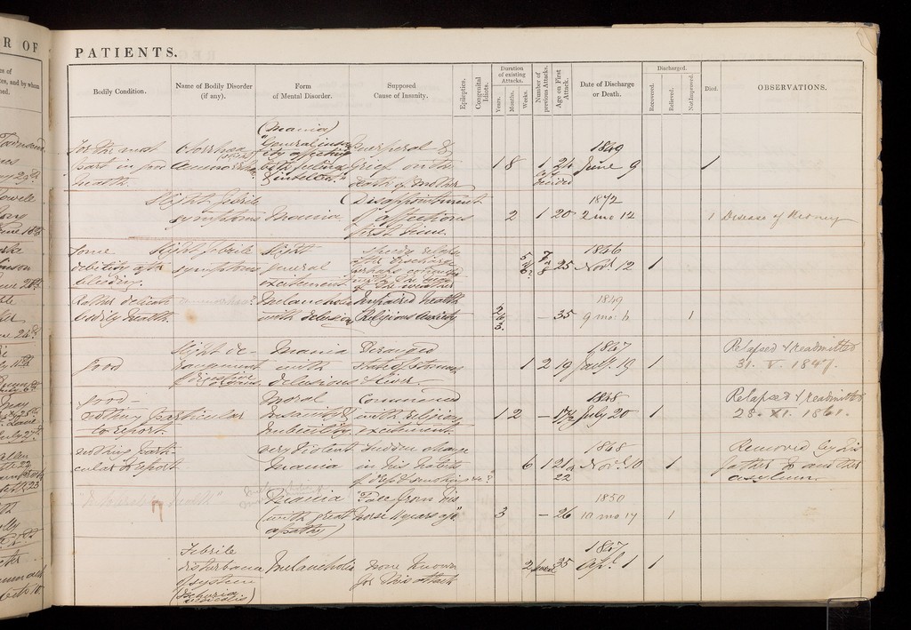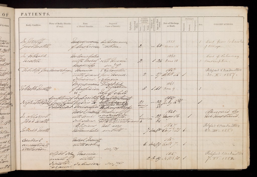 Credit: Registry of Admissions Book. Source: Wellcome Collection.