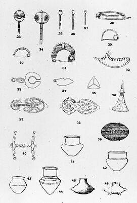 M0015759: Late Bronze Age: fibulae, razors, bits, feeding-bottles