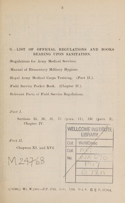 Credit: Notes for sanitary officers, British Expeditionary Force in France / [the War Office?]. Source: Wellcome Collection.